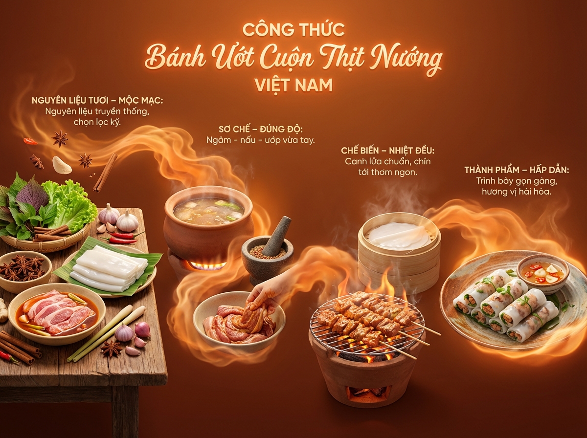 Bí quyết nướng thịt, pha nước chấm và cuộn Bánh Ướt chuẩn vị truyền thống